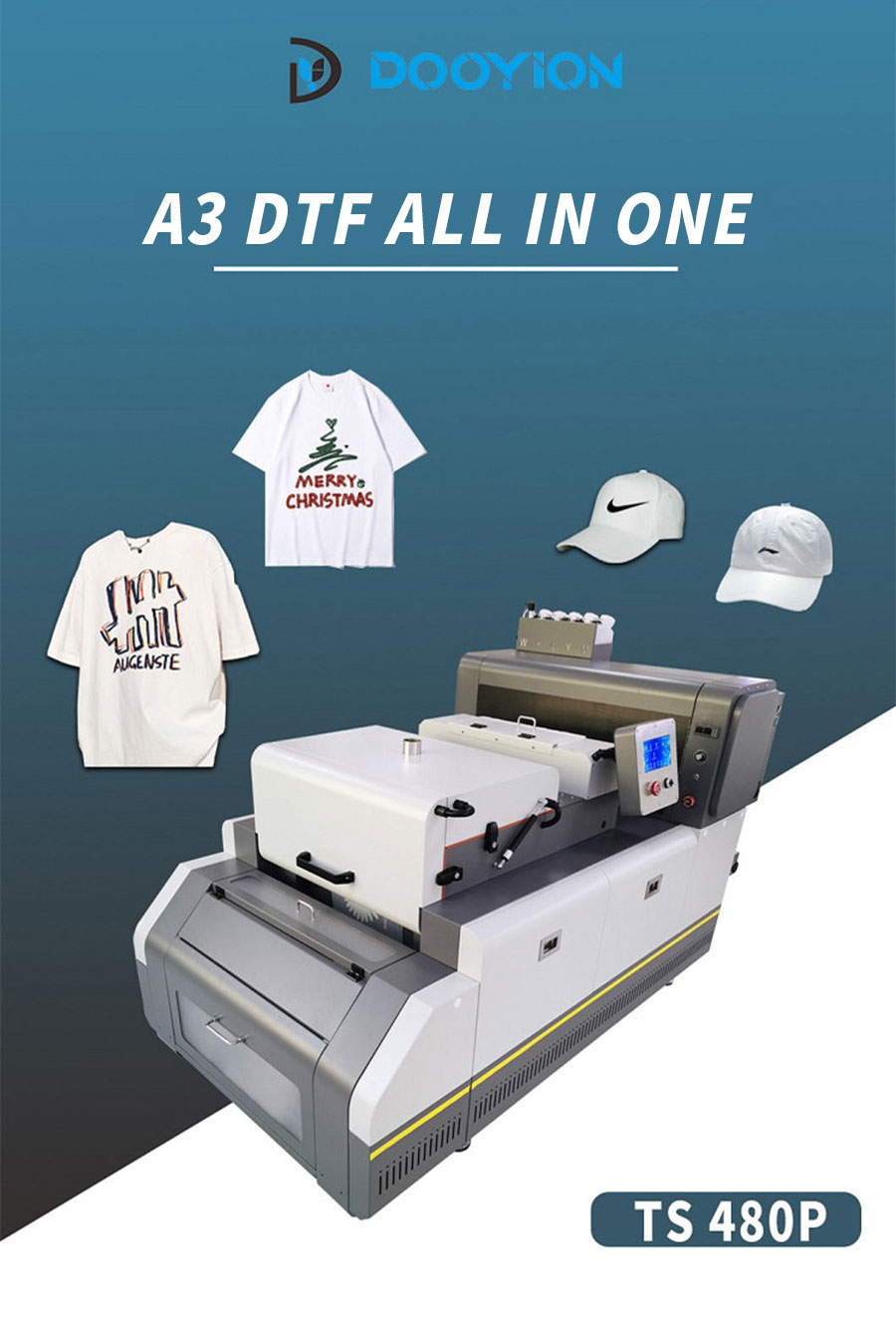 The A3+ Dtf printing system TS480P is newly designed and Integrated and unique appearance design A3 DTF printing machine. The dtf printer, dtf shaker, dtf dryer and media take up system all in one system, which is a new generation dtf printer.