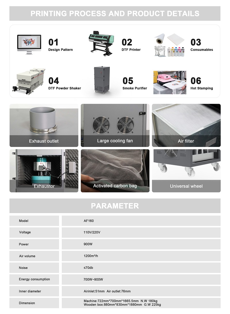 Specially designed for high-speed and large-scale dtf printer and powder shaker, and can also be applied for filtering in flag fabric sublimation ovens,