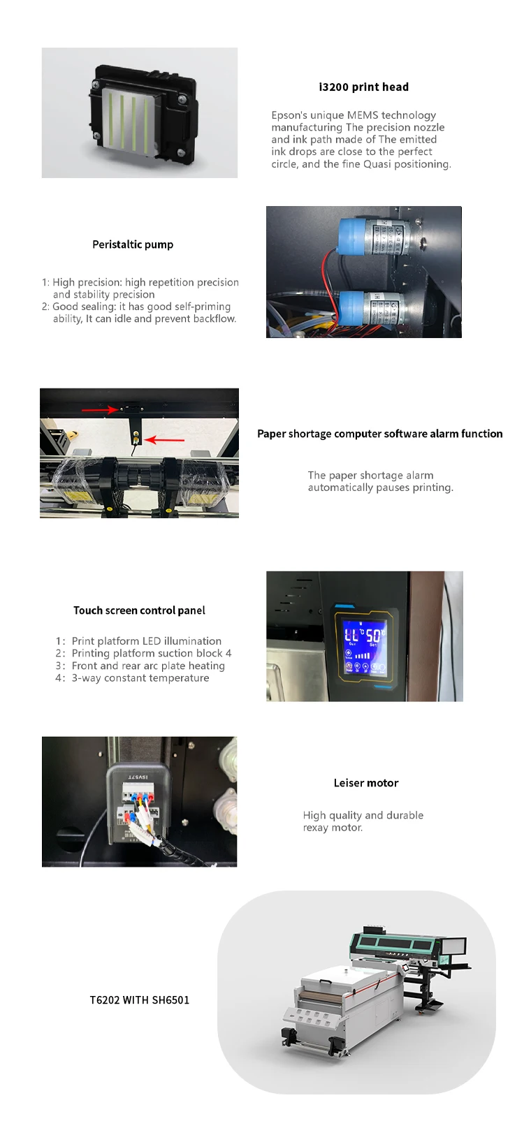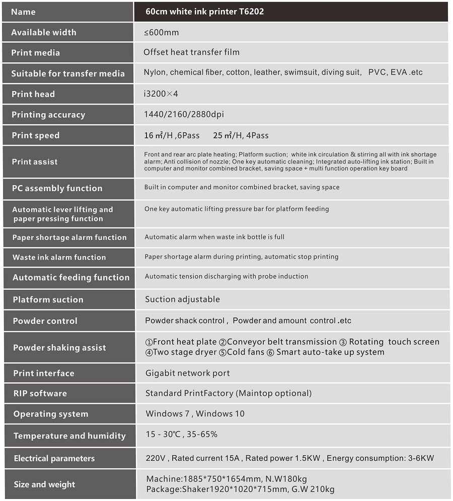 Parameter of 4 heads dtf transfer film printer T6202