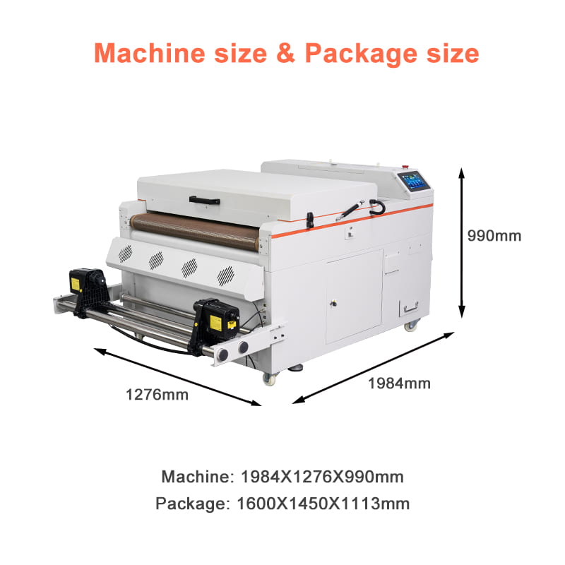 - With DTF conveyor blet: Convenient to print sample.Use non stick powder for a long time